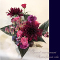 黒蝶ダリア、バラなどをダイナミックにつかったアレンジメント♪