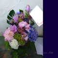 淡い紫が神秘的な雰囲気のアレンジメント。