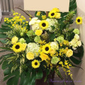 使用花材:プロテア、ひまわり、バラ、オンシジウム、モンステラなど