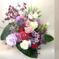 トルコギキョウ、バラ、、カーネーション、リュウカデンドロンなど、多種多様なお花を華やかにアレンジいたします。