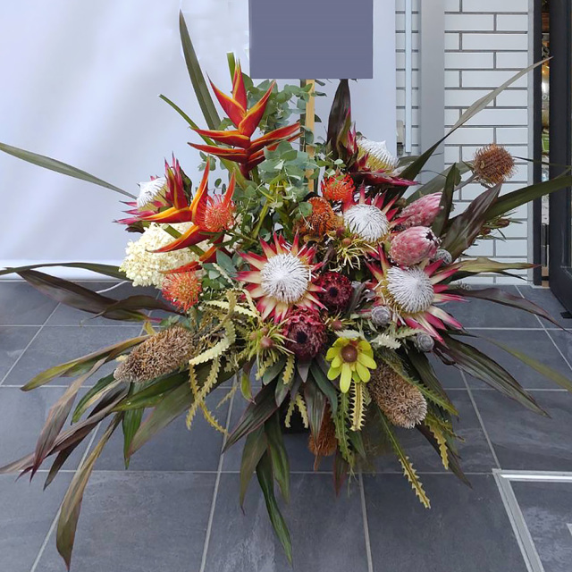 キングプロテアをはじめとしたネイティブフラワーをふんだんにアレンジしてお作りいたします。