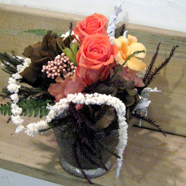 使用花材:バラ、アジサイ、ケイトウなど(プリザーブドフラワー)